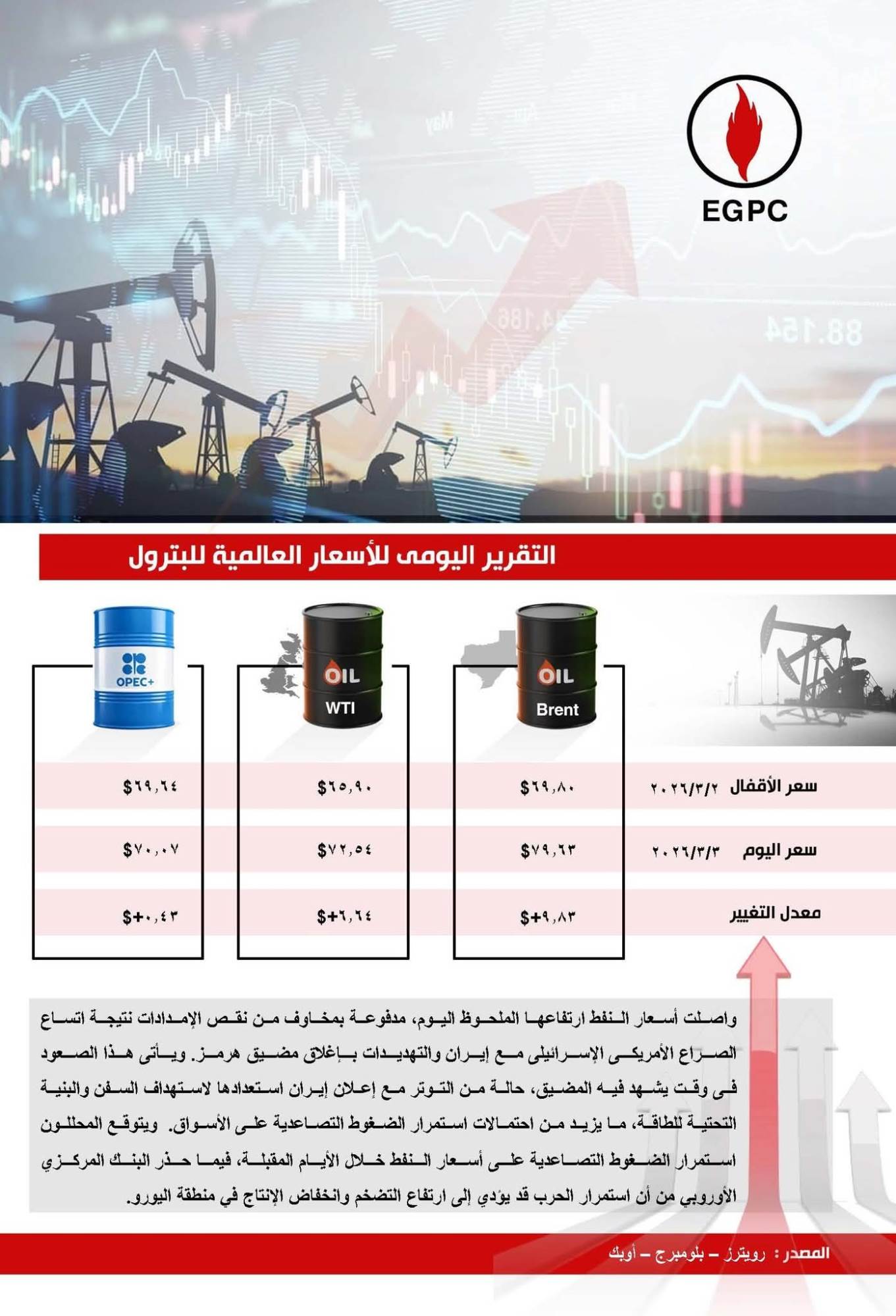 ويتوقع المحللون استمرار الضغوط التصاعدية على أسعار النفط خلال الأيام المقبلة، فيما حذر البنك المركزي الأوروبي من أن استمرار الحرب قد يؤدي إلى ارتفاع التضخم وانخفاض الإنتاج في منطقة اليورو.
