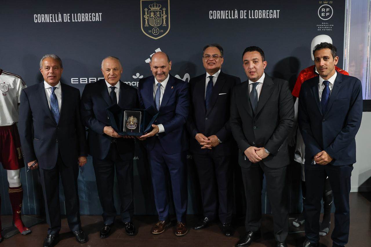 أهدى المهندس هاني أبوريدة، رئيس الاتحاد المصري لكرة وأعضاء مجلس إدارة الاتحاد ، درعاً تذكارية لرافاييل لوزان أبال، رئيس الاتحاد الإسبانى لكرة القدم، وذلك على هامش المباراة الودية بين منتخبي مصر وإسبانيا، التي أقيمت اليوم ملعب «آر سي دي إي» في كورنيلا إل برات، بمدينة برشلونة، ضمن استعدادات المنتخبين للمشاركة فى بطولة كأس العالم 2026 والتي تستضيفها الولايات المتحدة وكندا والمكسيك.