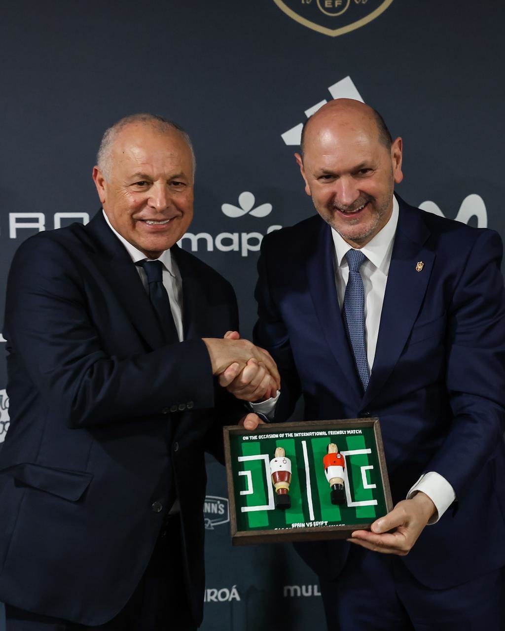 وبدوره، قام رئيس الاتحاد الإسبانى بتسليم أبوريدة درع الاتحاد وقميص المنتخب الإسباني، في إطار العلاقات الوطيدة، التي تربط الاتحادين المصري والاسباني وتأكيداً على تعزيز واستمرار التعاون الرياضى المثمر خلال الفترة المقبلة.